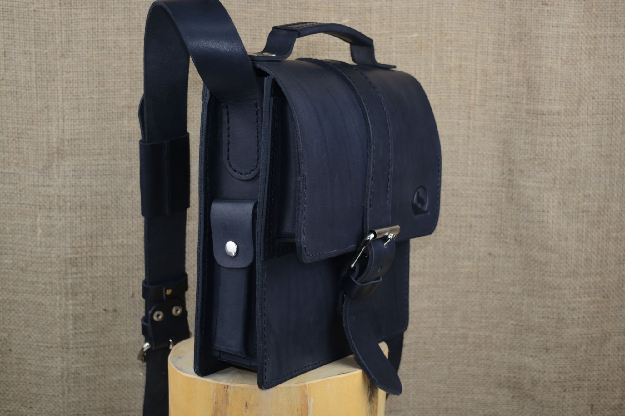 Kožená kabela přes rameno je uzpůsobená tak, aby se do ní v pohodě vešel formát A5. Kabela se uzavírá na klapnu pomocí přezky. Kabela Australan má na předním dílu pod klapnou našitou jednu větší kapsu vhodnou pro nošení chytrého mobilu do rozměrů 11 cm x 21 cm x 1,8 cm. Tato kapsa na mobil se uzavírá pomocí volné klapny bez zapínaní. Vnitřní prostor kabely má pouze jedno oddělení. Kabela pak má ze zadní strany ještě jednu zipovou kapsu. Po stranách kabely Australan jsou našité ještě dvě pouzdra, které se uzavírají na klapnu a druk a je možné je využít pro nošení kapesního nože nebo tužek.