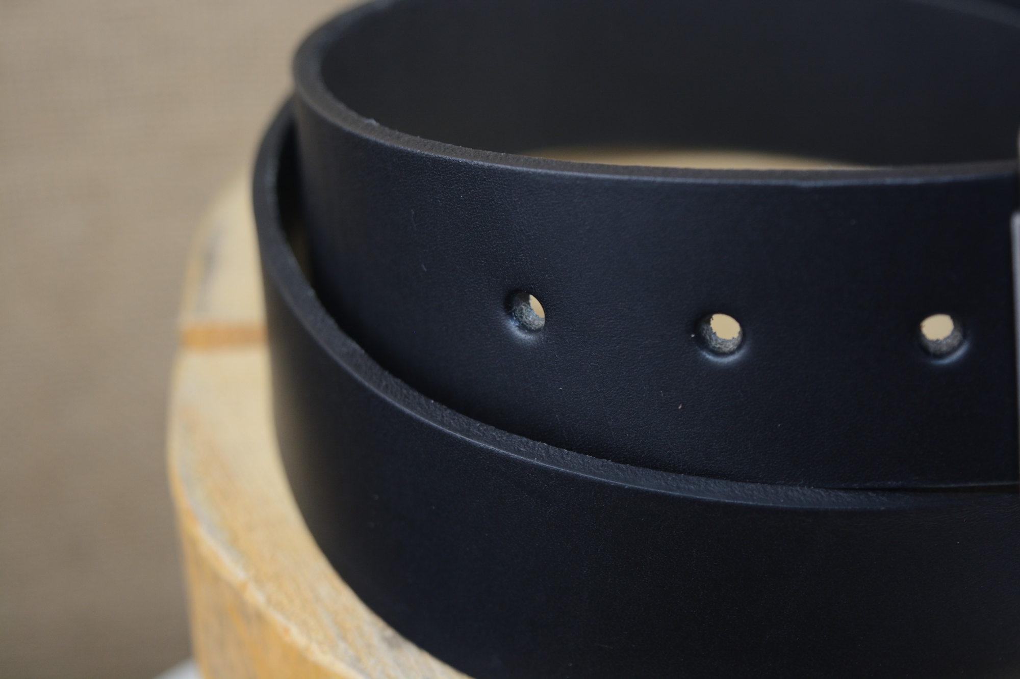 Kovová přezka je k opasku připevněna pomocí koženého úchytu a šroubku. Všechny naše opasky jsou řezané a po hranách, které nejsou nijak hlazené, je vidět řez pravou kůži. Do všech opasků vysekáváme 7 dírek. Délku opasků, vždy upravujeme na míru.