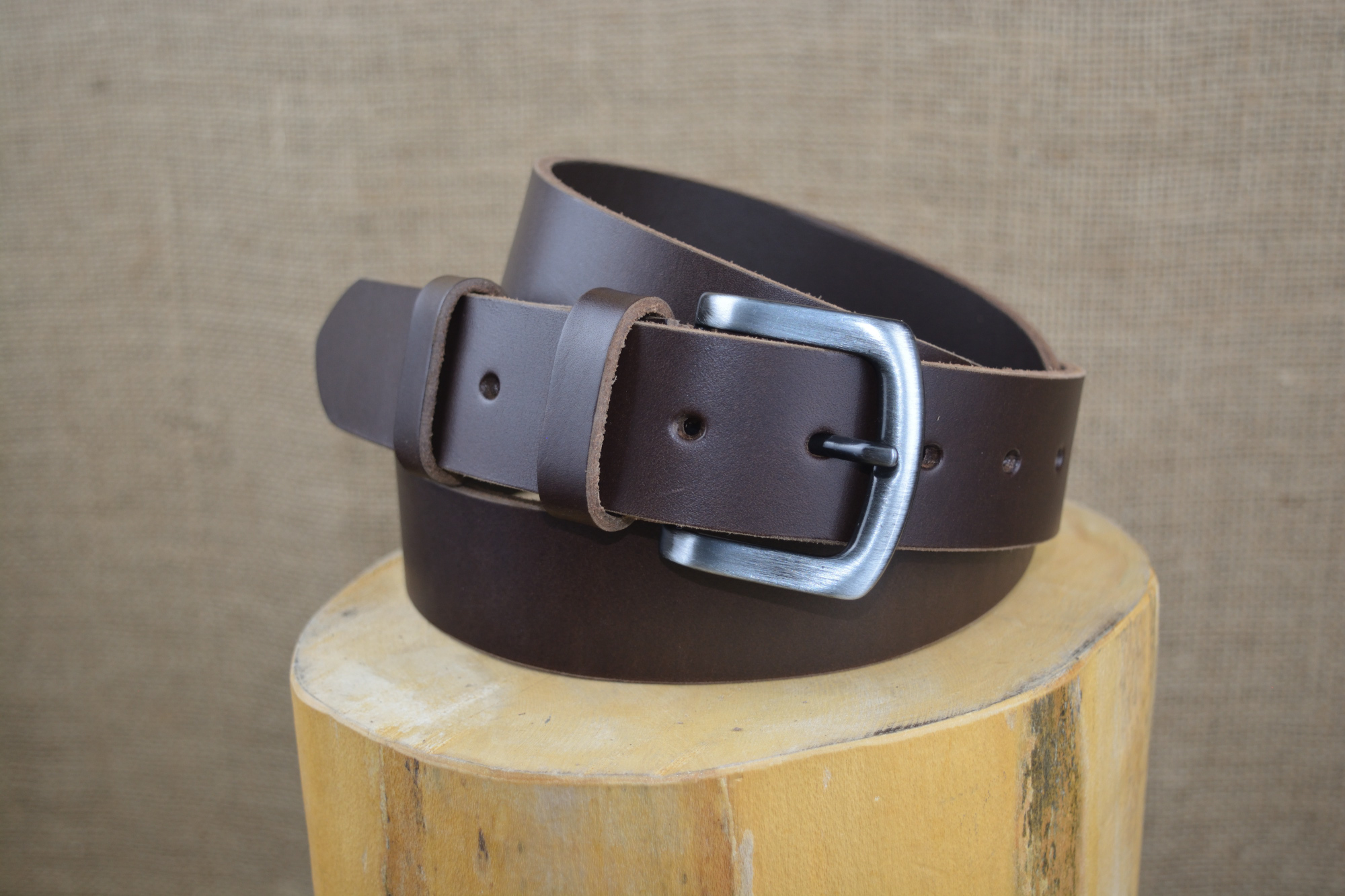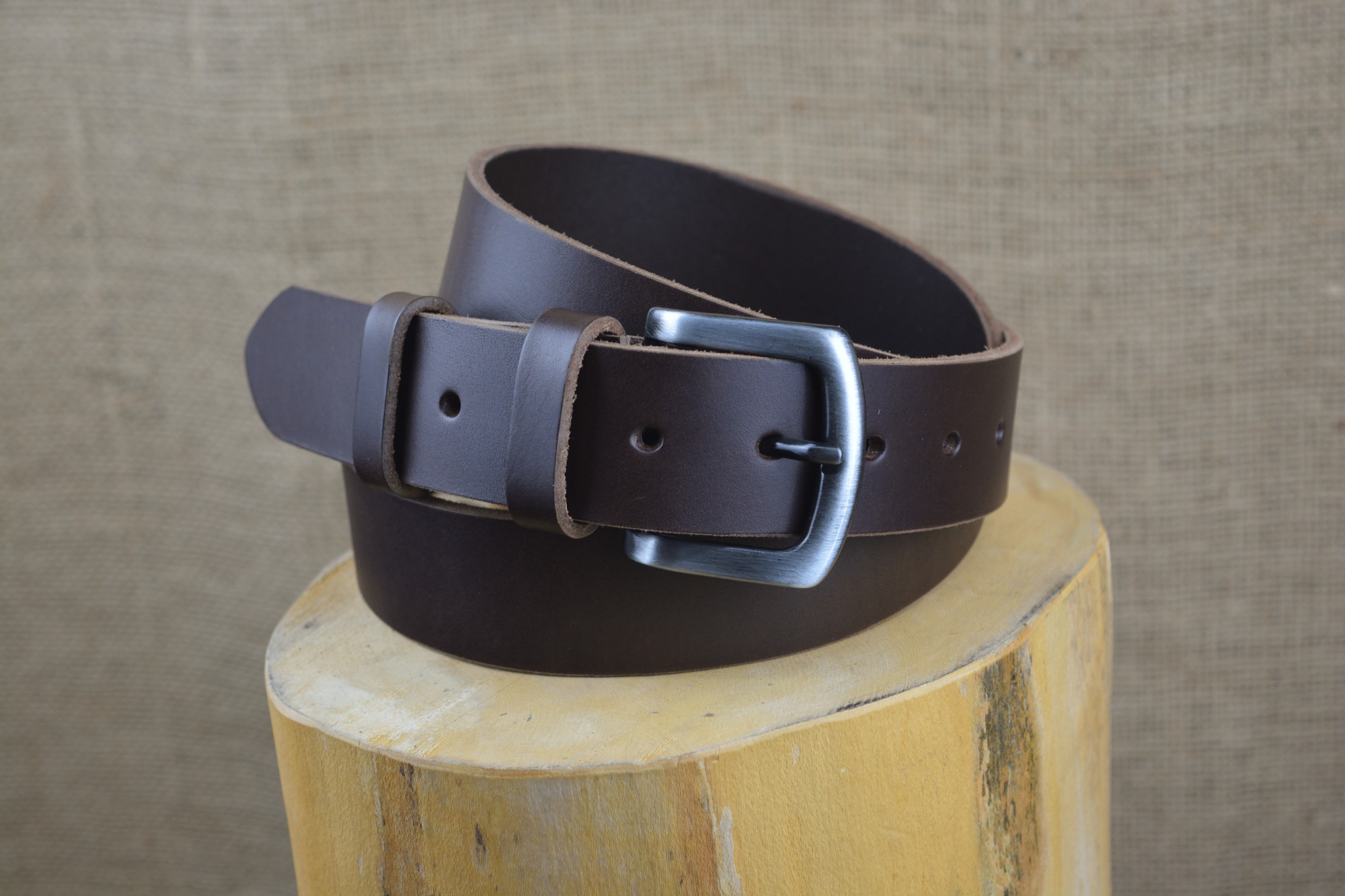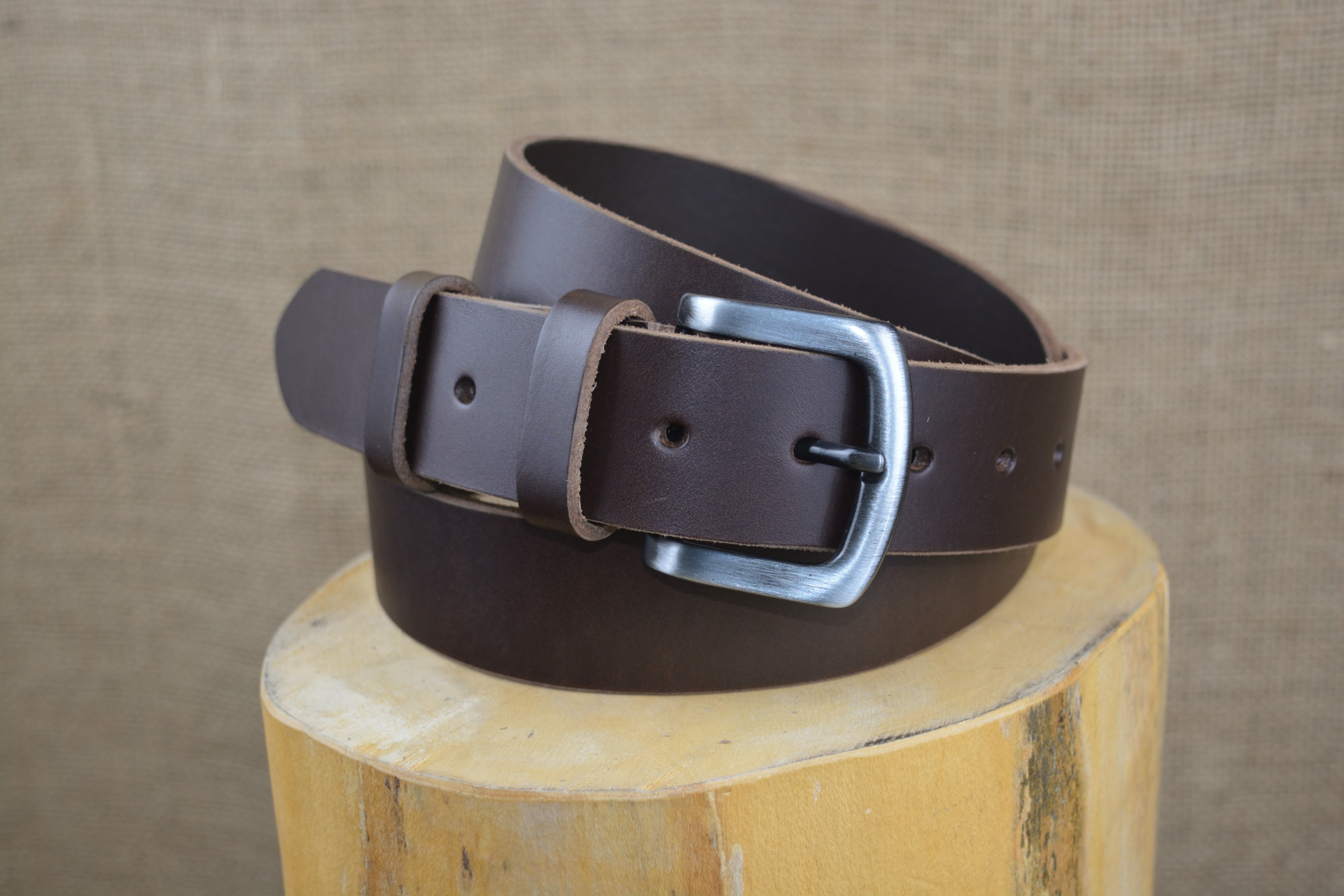 Kožený opasek pro běžné nošení, pravá hovězí kůže, hnědý, šířka 4 cm, obvod pasu na míru, dvě poutka, kovová přezka