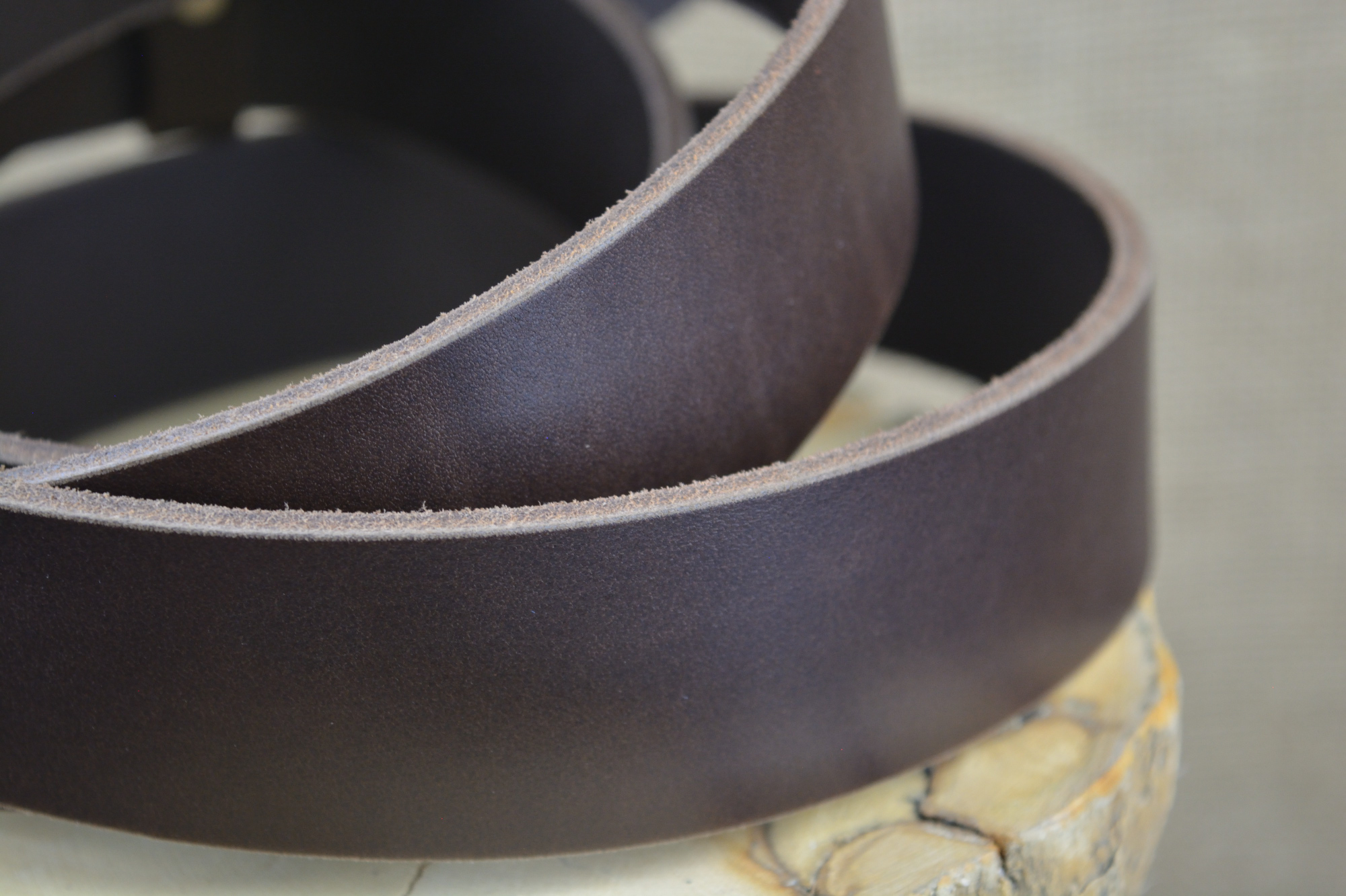Kovová přezka je k opasku připevněna pomocí koženého úchytu a šroubku. Všechny naše opasky jsou řezané a po hranách, které nejsou nijak hlazené, je vidět řez pravou kůži. Do všech opasků vysekáváme 7 dírek. Délku opasků, vždy upravujeme na míru.