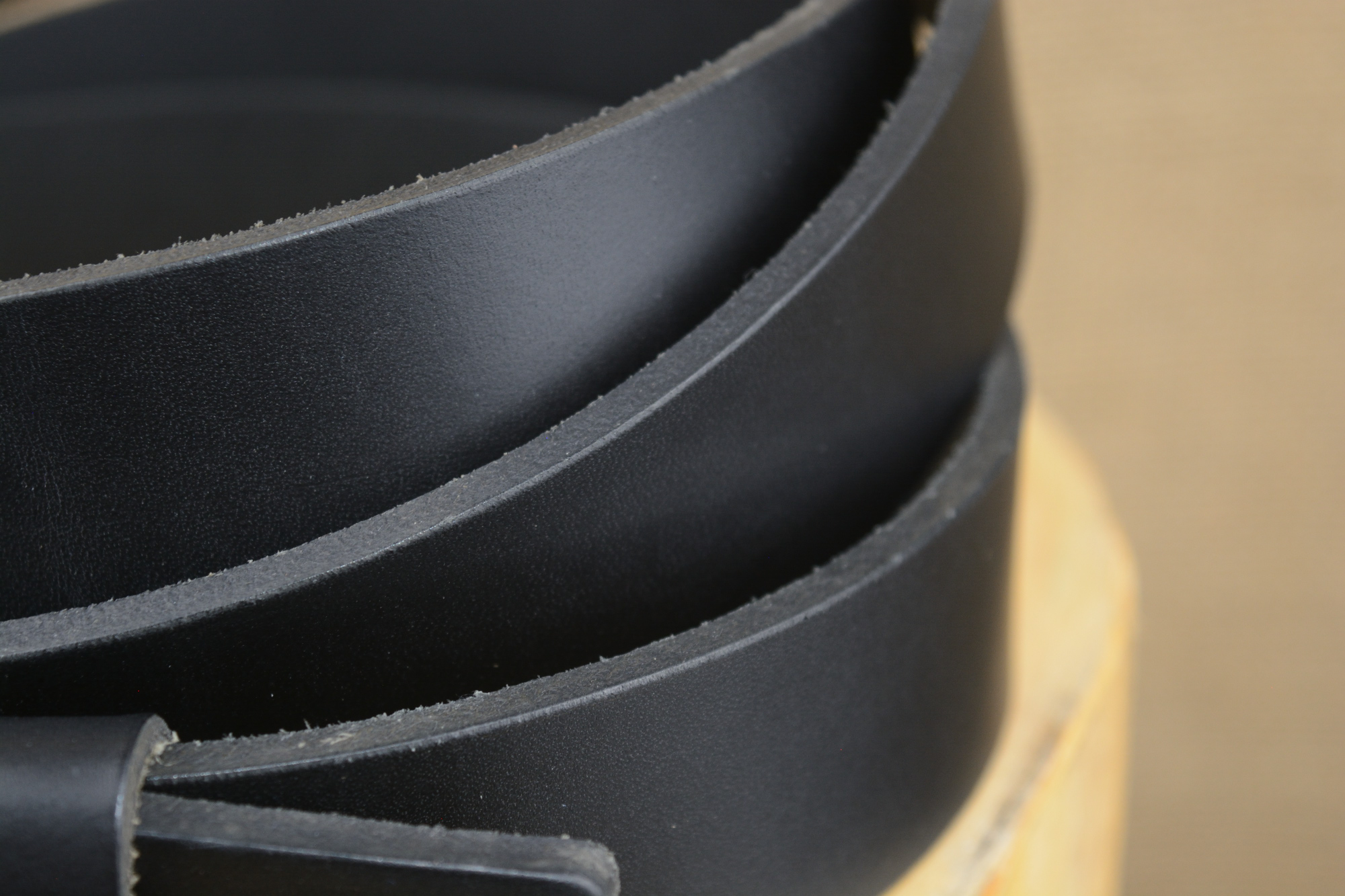 Kovová přezka je k opasku připevněna pomocí koženého úchytu a šroubku. Všechny naše opasky jsou řezané a po hranách, které nejsou nijak hlazené, je vidět řez pravou kůži. Do všech opasků vysekáváme 7 dírek. Délku opasků, vždy upravujeme na míru.
